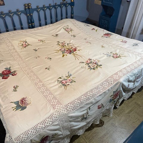 Vintage handgjort säng/sofföverkast med folkligt ornament från Lettland