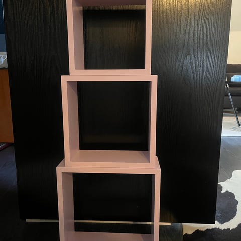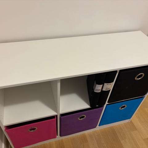 Nätförvaringshylla med sex nivåer. Rosa kulör. Skickas eller hämtas i Annelöv.