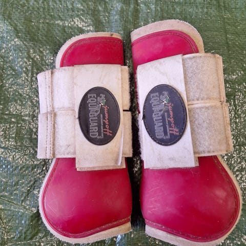 EquiXpert senskydd och bakstrykkappa. Storlek Full. I använt skick, se bilder. Men har fortfarande mycket kvar att ge. Sitter stadigt på hästens ben och de enda som användes och fungerade perfekt när jag hade häst. Bästa senskydden och bakstrykskapporna tycker jag.