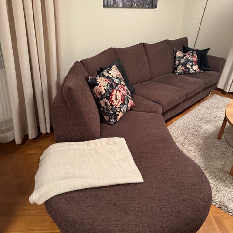 Soffan kan delas i tre delar - se bild utan kuddarna.