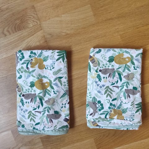 Rensar ut alla barnsaker. Här finns täcken och kuddar, påslakan och lakan. 20 kr/del