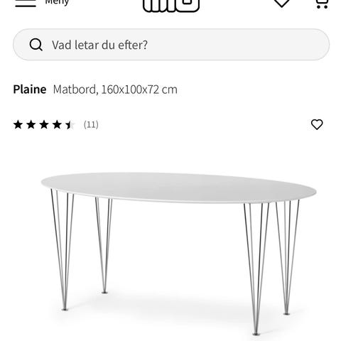 Troligen köpt på Jysk ett bord med vit bordsskiva och smala stringliknande metallben. Bordet har en enkel och funktionell design med en rektangulär form och rundade hörn. Passar för olika användningsområden såsom matplats, arbetsyta eller allmänt bord i hem eller kontor. Kan användas som matbord eller som skrivbord. Endast avhämtning! Får plats i en vanlig bil när benen skruvats av. Nypris ca 1900 kr