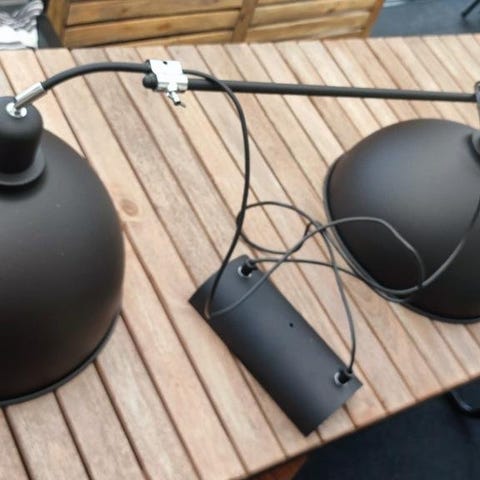 Den är tillverkad i metall och har en E27-sockel och klarar max 75 W. Kabeln är 2,8 m lång och vit textilklädd.