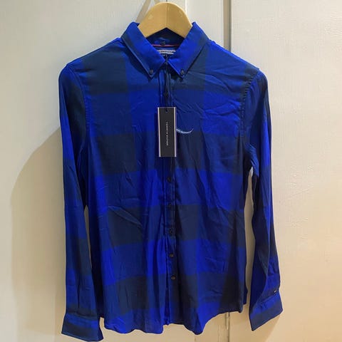 Rödrutig skjorta med långa ärmar och knappstängning. Skjortan har två bröstfickor med knappar och en klassisk krage. Detaljerna på skjortan ger den en västerländsk känsla.
