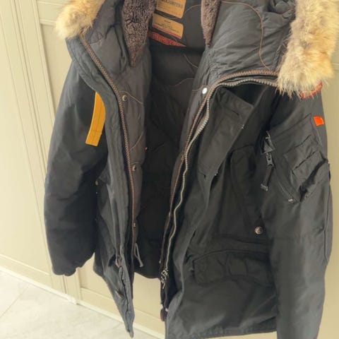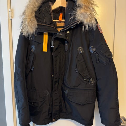 Parajumpers Masterpiece Series jacka i storlek L för herrar. Jackan är svart och har en pälsdetalj på huvan. Materialet är anpassat för utomhusbruk och erbjuder skydd mot kyla.