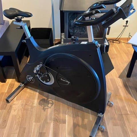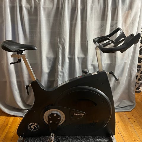 Body Bike Spinningcykel i svart färg. Cykeln är utformad för inomhusträning och har en robust ram och justerbar sadel för anpassning efter användarens behov.