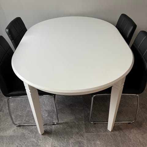 Stort vitt kryssbord + 8 fina stolar