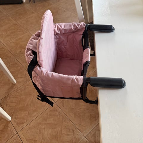 Kaxholmen Barnstol "Stol på bord" i grått tyg. Passar de flesta bord. Enkel att montera och använda för att ge barnet en säker sittplats vid bordet. Perfekt för mor/farföräldrar med barnbarn på besök