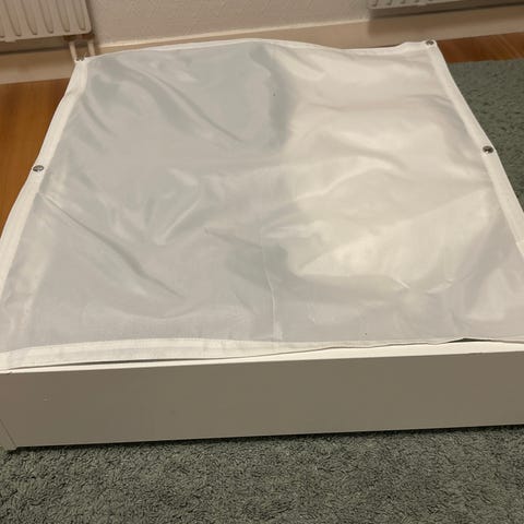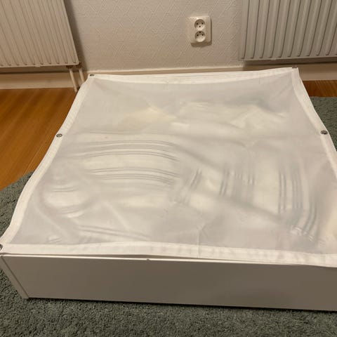 Lådans mått 70x66,5 cm höjd 17cm inkl. hjul.