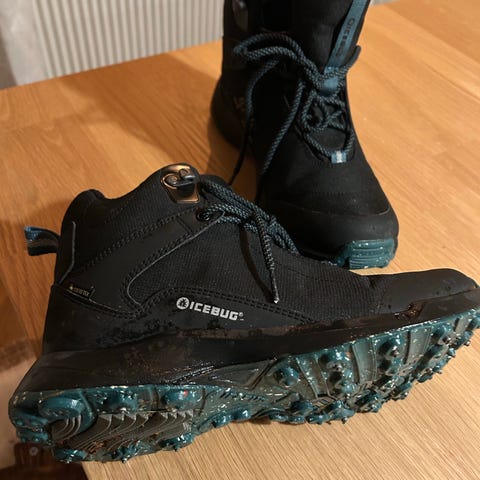 Köpte ett par ICE BUG Alne NT Black storlek 42 vinter skor men var för små så dom är helt nya bara gått inne med dom en dag med Wool sula medium inlägg mycket varma sulor och lätta skor kan gå i vatten gore tex men har dock inte original sula kvar eller kartong bara kvitto skicka sms för mer info eller gå in på icebug.com och få reda på mer tar bara swish