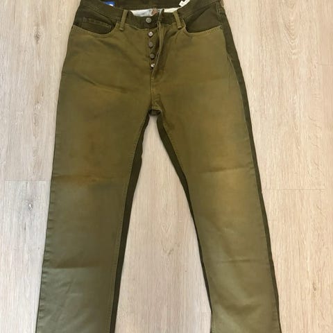 Säljer en Acne Studios Blå Konst TENT-B denimjacka i olivgrönt bomullstyg. Jackan är tillverkad i Italien och tillhör den limiterade Blå Konst-linjen som Acne lanserade 2017 och lade ner 2019 – en linje som idag är mycket eftertraktad.
