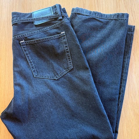 Säljer ett par Acne Studios Blå Konst LAND B jeans, tillverkade i Italien. Modellen LAND B tillhör den limiterade Blå Konst-linjen som Acne lanserade 2017 och lade ner 2019 – vilket gör dessa byxor ovanliga och eftertraktade idag.