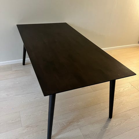 • Runt matbord i mörkt trä (svart) med stabil trä fötter