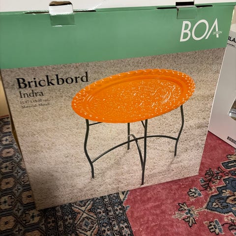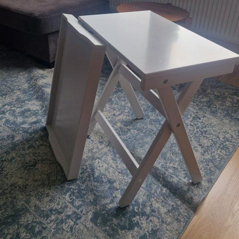2 snygga röda brickbord, stapelbara.