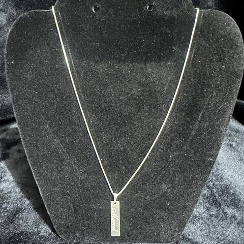 Ett silverfärgat halsband med ett klassiskt utseende. Halsbandet har en fin länkdesign och ett spänne som håller det säkert på plats. Perfekt för att komplettera din stil.
