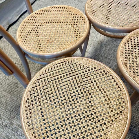 Jag säljer två stolar av märket Ton. Rottingstolen har nyligen renoverats. Det finns två små skador på stolens ryggstöd (se foto), men i övrigt är den i gott skick. Säljer dem för 2000 kr styck.