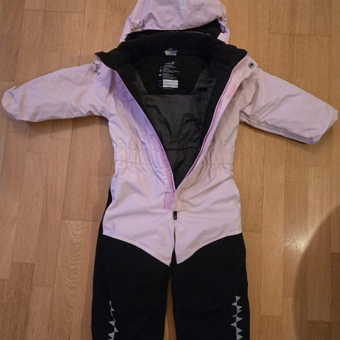 Isbjörn of Sweden barnoverall i storlek 92, färg grön, unisex. Overallen är tillverkad i slitstarkt material med vattenavvisande behandling (DWR) och har förstärkningar på knän och underben. Produkten är designad för att tåla lek och utomhusaktiviteter för barn. Det finns en skada på ena benet som syns på bild.