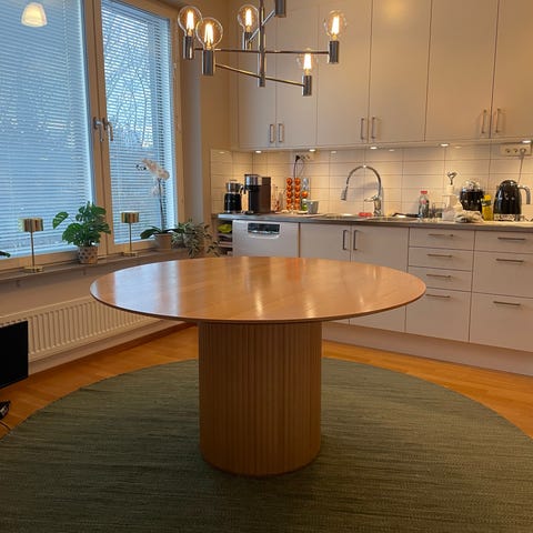 Vi säljer vårt runda matbord från Mio, väldigt bra skick! 136 cm i diameter