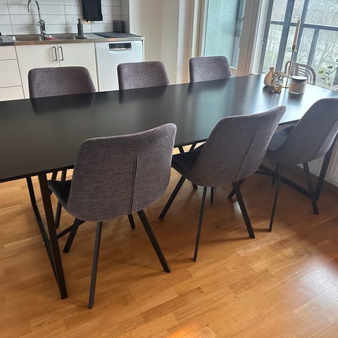 Köper du bordet och stolarna som matgrupp får du ett paketpris. 6000 kr.