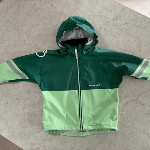 North Bend (OBS! Inte Didriksons men märket finns inte att välja i Blockets nya regi) regnjacka i färgen rosa, barnstorlek 98-104, avsedd för flickor. Jackan har huva och dragkedja fram samt reflexdetaljer för ökad synlighet. Materialet är anpassat för att skydda mot regn och vind.