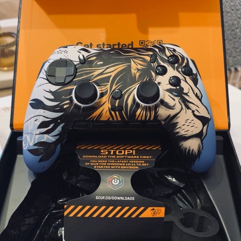 Trådlös spelkontroll med 2.4G anslutning kompatibel med PC operativsystem Windows XP, 7, 8, 10, 11 samt PC Steam. Kontrollen är svart med gröna detaljer och levereras med en USB-mottagare för trådlös anslutning.
