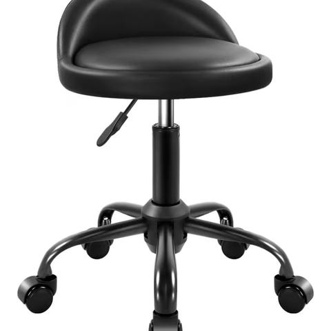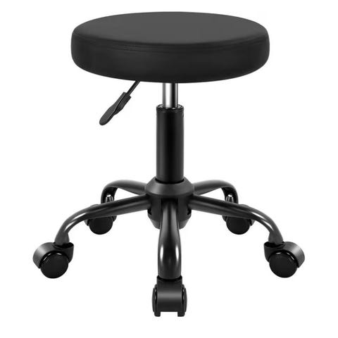 Säljer en rund rullande pall med justerbar höjd i läder.