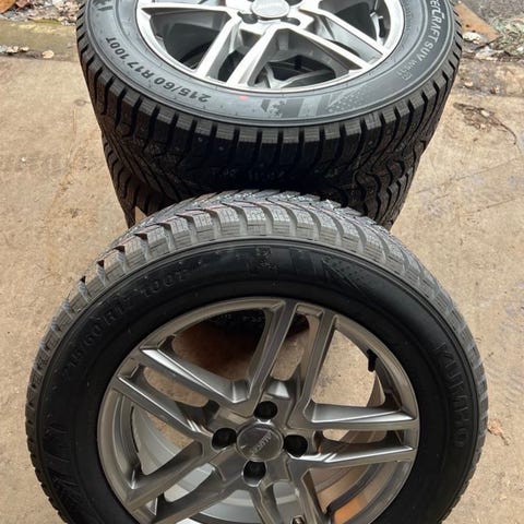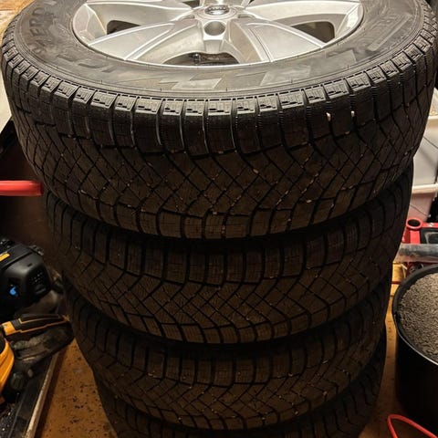 Däck nordisk friktion 215/65 R17 Goodyear Ultra Grip Ice3 (topp i tester), tillverkade V27 2023, mönster djup 7-7,5 mm (nytt 8,2) och har gått 440 mil.