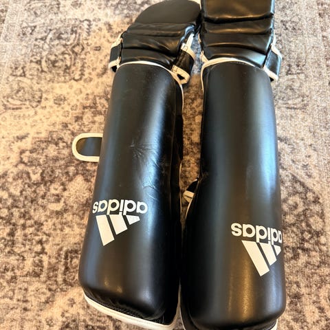 Boxningsskydd inklusive handskar och benskydd i svart färg. Skydden är utformade för att ge skydd vid boxningsträning och match. Handskarna har justerbara remmar för säker passform och benskydden är vadderade för att skydda underbenen. Materialet är slitstarkt och lämpligt för kampsport. Passar för träning och skydd vid boxning.