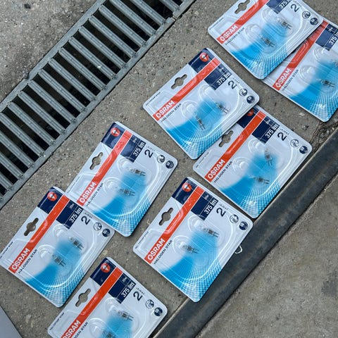 Halogen lampor, enligt bilder och beteckningar. Slutförsäljning av de sista i lagret. Helt nya i orginal krt. Fyra (4) stycken och säljs tillsammans. Nypris var 600:- per styck. Nu totalt pris som anges. Finns i Umeå och kan skickas mot extra kostnad.