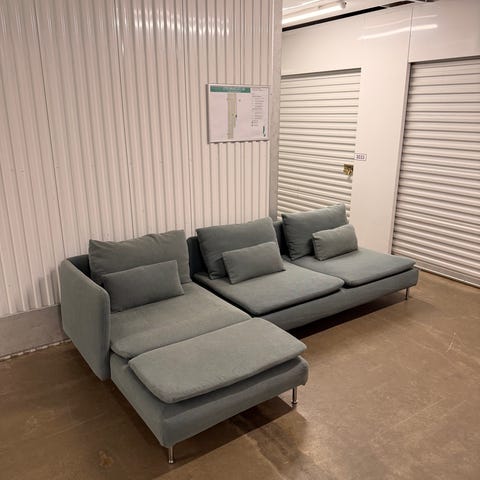Ikea Söderhamn 2-sitssoffa med schäslong och armstöd på soffdelen.