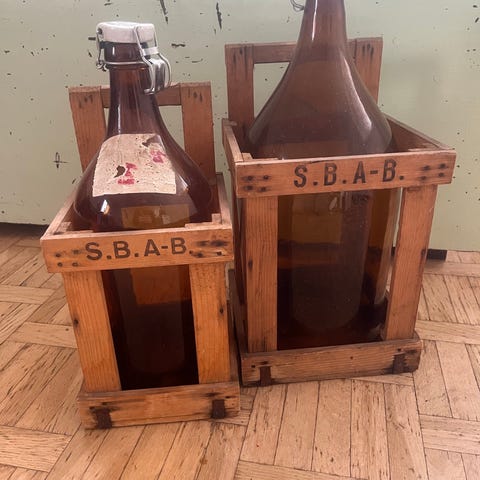 Lövnäs glasflaska med trästativ. Flaskan är tillverkad av glas och har en brun färg. Trästativet är designat för att hålla glasflaskan stadigt. Produkten kan användas för förvaring eller dekoration.