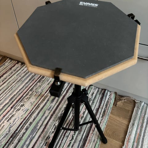 Lite använd trummatta med en praktiskt stoppkloss för bastrumman som förhindrar att den flyttar sig när man spelar. I mycket gott skick.