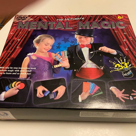 Trollerilåda med medföljande beskrivning på 125 trolleritrick. Från ca 6 år. Den svart/vita brickan samt en stor kanin saknas tyvärr.