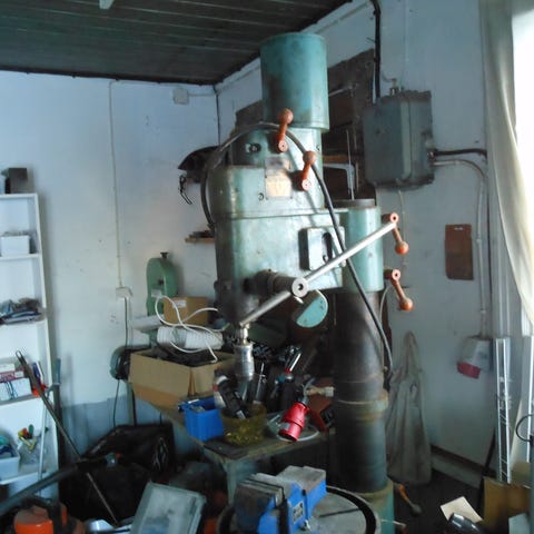 Fyrspindlig ASEA pelarborr 4202, ett riktigt konststycke från 60 talet, tillverkad i Västerås =(kvalté), fullt fungerande maskin, automatisk matning på fjärde huvudet med tre olika matningshastigheter, MK3 i spindlarna, två snabbchuckar medföljer, pinolrörelse 120mm. Höjd 215 cm, bredd 130 cm, djup 95 cm.