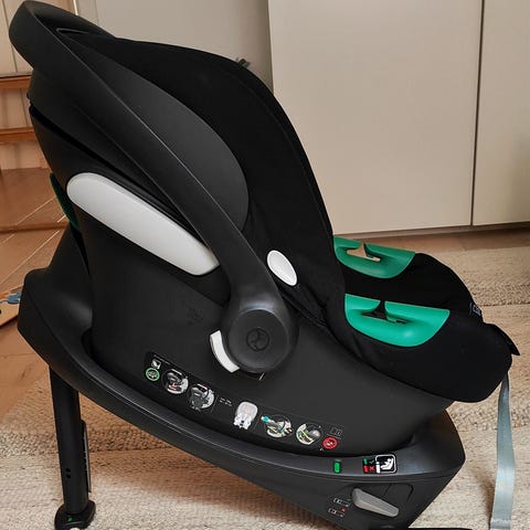 CYBEX Cloud Q Bilbarnstol för barn upp till 13 kg. Färgerna är röd och orange. Passar för montering i bil och har säkerhetsfunktioner anpassade för små barn.