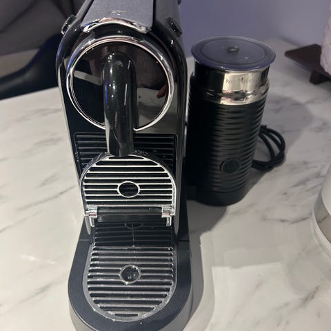 Nespresso kaffemaskin med kapselställ