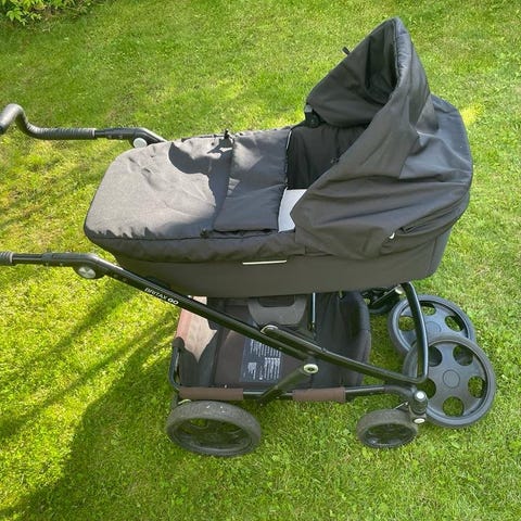 Britax Go Big 2, inköpt 2019. Fint skick, alltid förvarad inomhus. En mångsidig rymlig vagn som funkar på alla underlag. Har gått ur sortimentet. Varukorgen är solblekt, en reflex saknas men det är endast kosmetiskt. Finns en del repor på chassit. Alla funktioner är fullt fungerande.