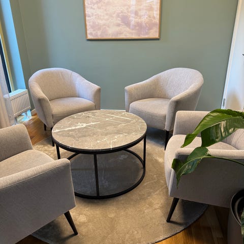 Ram och tygen är i bra skick utan för en stol har 2 fläckor på tyget och overallt ser smutsiga ut. Har inte provat att tvätta.