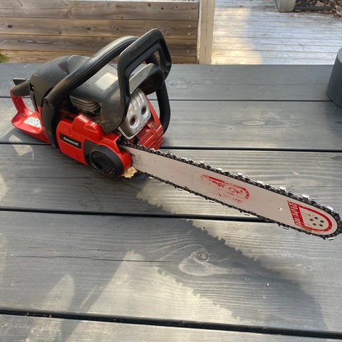 Svärdet är 38 cm långt och kedjan är från Oregon.