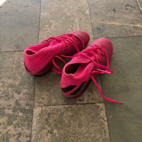 Puma fotbollsskor i storlek 36 med röd och svart färg. Skorna är designade för fotboll och har en yttersula anpassad för sportaktivitet på inomhusunderlag.
