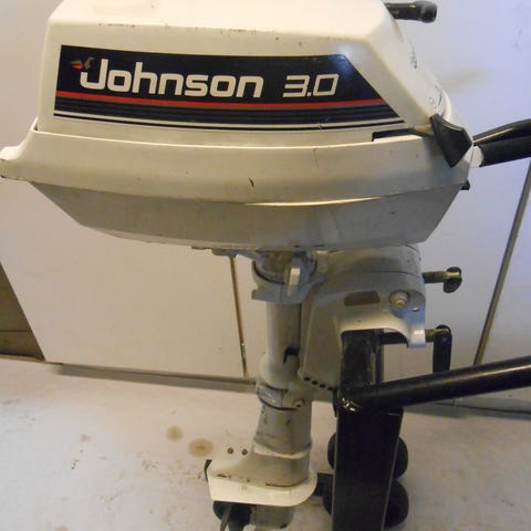 25 hk med manuell start och lång rigg. Ett propellerblad behöver riktas.