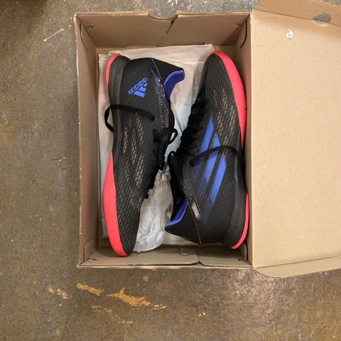 Adidas Predator inomhusfotbollsskor i svart och vit färg. Skorna har en sockliknande design för bättre passform och är tillverkade i syntetmaterial. Storlek 44, lämpliga för inomhusbruk.