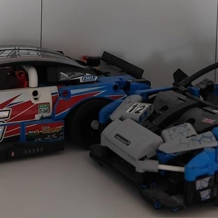 Legoliknande racerbilar. Bitarna är inte autentiskt Lego men är kompatibla med vanliga Lego klossar. Två instruktionsböcker medföljer.