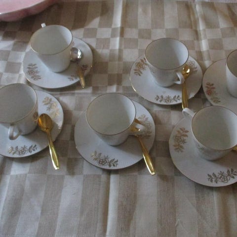 Vintage 11 st kaffekoppar och ett extra fat