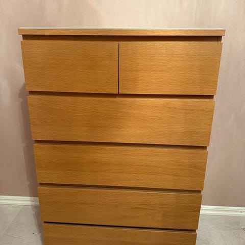 IKEA MALM byrå med 6 lådor i vitt utförande. Byrån är tillverkad av trä och har en modern design. Passar för förvaring i sovrum eller andra rum där extra förvaringsutrymme behövs.