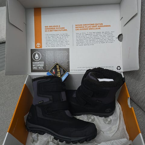 Säljer ett par Timberland Courma Kid WL Pull On Boots i storlek 38 – rejäla och varma vinterkängor i mycket fint skick 🌟