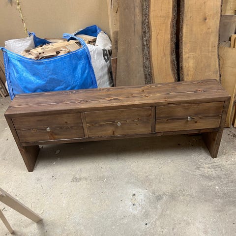 stilig sideboard i träd, bra förvaring av hushållsartiklar, leksaker m.m.