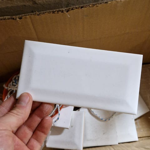 Vi har renoverat köket och kaklat med snordyrt kakel från Byggfabriken. Blev några plattor över. Kanske någon som behöver några enstaka plattor? Finns 18 vanliga och en med en rundad sida. 30 kr styck eller allihop för 500 kr.
