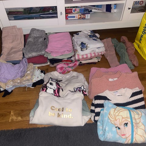 Massor av kläder (jackor, jeans, byxor, shorts, t-shirt, långarmat, pyjamas mm), Puma och Nike skor, Everest sandaler, ett par jätte lätta tygskor, inomhus skor, vattenskor. Några leksaker och böcker, handdukar etc. Storlekar varierar från 3 månader upp. Många kläder i storlek 86. Otroligt stort paket som samlats på under åren. Det finns mer leksaker och kanske kläder också som jag inte hunnit titta igenom för den som är intresserad. Allt på bilden för endast 1000 kr!