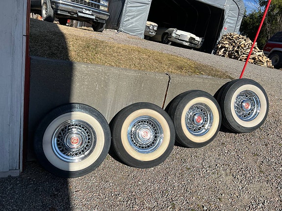 4 stycken äkta ekerfälgar med gamla radial däck. made in usa!